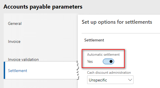 The payable parameters have overriding functionality. It means that if automatic settlement is off in the payable parameters, then the functionality will not work even though it is on in the profile.