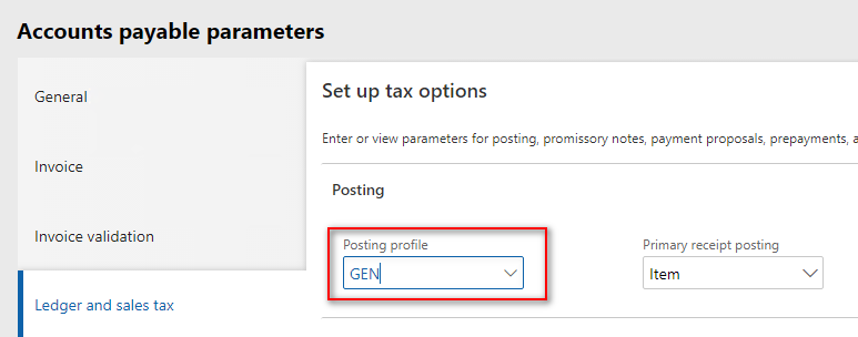 To define a profile for the source document, in general cases the system uses “accounts payable” parameters. The image below shows a posting profile parameter which is used to post liability.