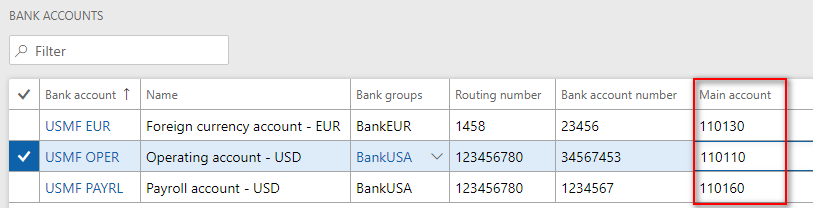 To define a bank ledger account the system uses an account specified on the bank account page.