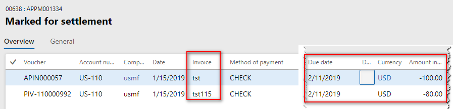 All created payment lines are marked for settlement with the open transactions that were used for creating the line.
