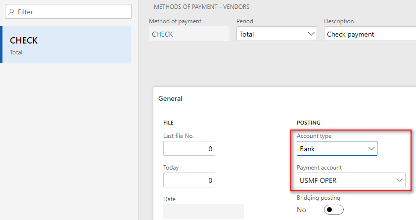 It can be a good idea to check payment status before posting a journal. For example, for the “CHECK” payment method the payment status must be “Sent” because this status appears after the printing of checks. It’s also a good idea to check that the check number is filled and the offset account is the type bank.