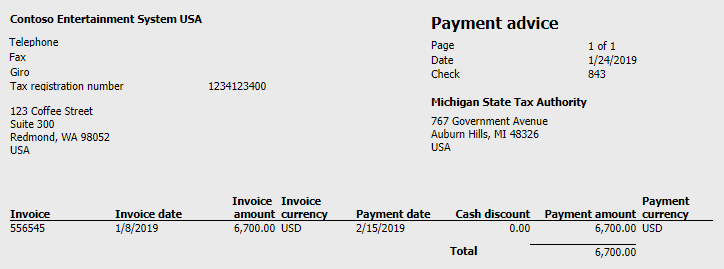 When payments are generated, it’s possible to print the “Payment advice” report which is used to inform vendors about processed payments.