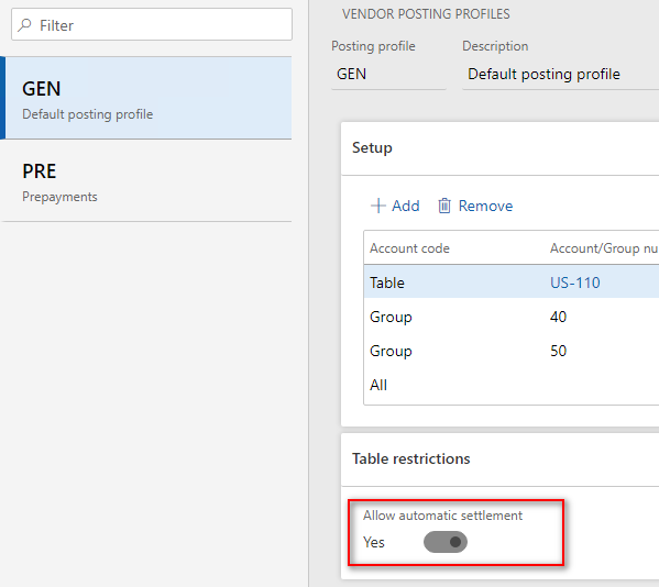 Also, the “Allow automatic settlement” parameter in the appropriate posting profile must be set to “Yes.”