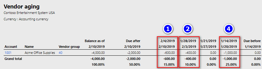 From the point of view of analysis and planning, the most interesting report is the vendor aging report. This report allows you to get information on forward and overdue payables.