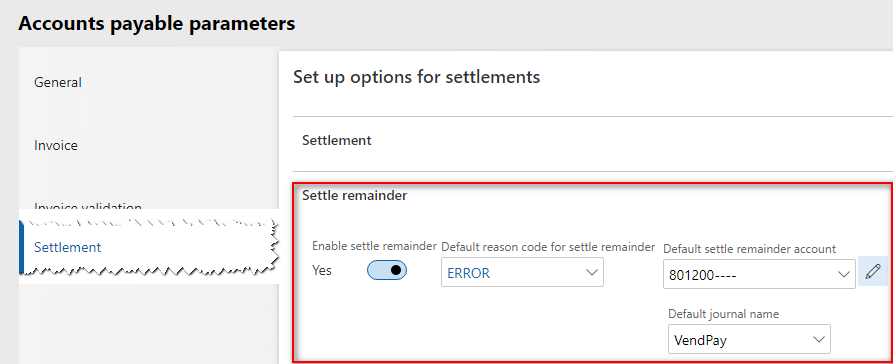 For activating the “Settle remainder” functionality, you need to go the “Accounts payable parameters” and set it there.
