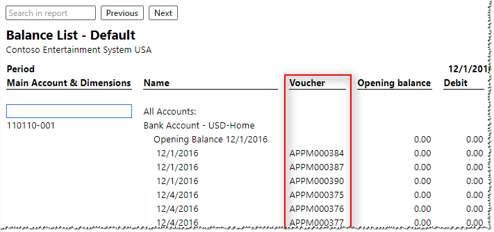 The form shows all financial dimensions defined in the system. Every dimension is presented in a specific column. You can find the financial dimensions by following “General ledger > Chart of accounts > Dimensions” in D365F. If there are a long list of defined financial dimensions, then the form becomes unreadable. You can define the dimension set and use it to only show the dimensions you need.