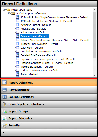 In a common scenario, you setup the report row definition, where you define all rows needed in the report. After that, you configure the column definition. Next, you set up the report definition. The definitions are known as the “building blocks” of the report.