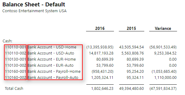 - Description – the description of the row. For example, in case of the balance sheet report, the row descriptions can be Cash, Inventory, Accounts Receivable, etc. More about the row description is here.